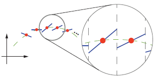 解释为什么更换k-WTA激活函数有利于提高对抗的鲁棒性: 如下图为利用k-WTA模型生成的间断、密集、不连续的带有红点的短蓝直线去拟合一维函数(绿色虚线)的示意图。我们可以知道,由于在不连续性中,梯度也是无法确认的,因此攻击者对对抗样本的搜索的将会变得盲目。同时这样子也不影响网络的正常分类训练。因此具有可行性。