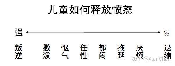 【撒泼正是表达愤怒的一种幼稚的方式,就像孩子听到大人说‘不行,你不能这样!’这让孩子非常愤怒,同时又感到无助,因为对那个让他生气的大人,孩子无法用暴力或者带有攻击性的行为去回应,所以唯一能做的就是躺倒在地,又踢又叫。 不带攻击性地释放愤怒需要一段时间。其中在‘适应性儿童’的所有行为里,怄气是最能说明怎样用时间来稀释愤怒的例子。怄气可以持续很久,几个小时甚至好几天。怄气的人总是绷着脸、阴沉沉的样子,而且安静地很反常。通常这是孩子在权威之下无法随性所欲才做出的反应。成年人或许会因为输掉一场权力斗争而生闷气,也是同样的道理。说白了,怄气是输家在对强大的赢家做出反应。 我们每一个人都必须适应各自童年的特定情形,所以就产生了各种行为模式,关联着各种情感和情绪,像马赛克的色彩一样繁多复杂。因此很多人的许多行为都源自于“适应性儿童”的自己。】